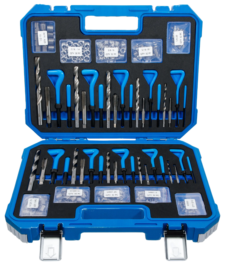 Med denna sats får du en komplett och professionell lösning för gängreparation i både metriska och tumdimensioner. Den höga kvaliteten, det breda innehållet och den smarta förvaringen gör den till ett oumbärligt verktyg för alla som arbetar med reparation, underhåll och montering.