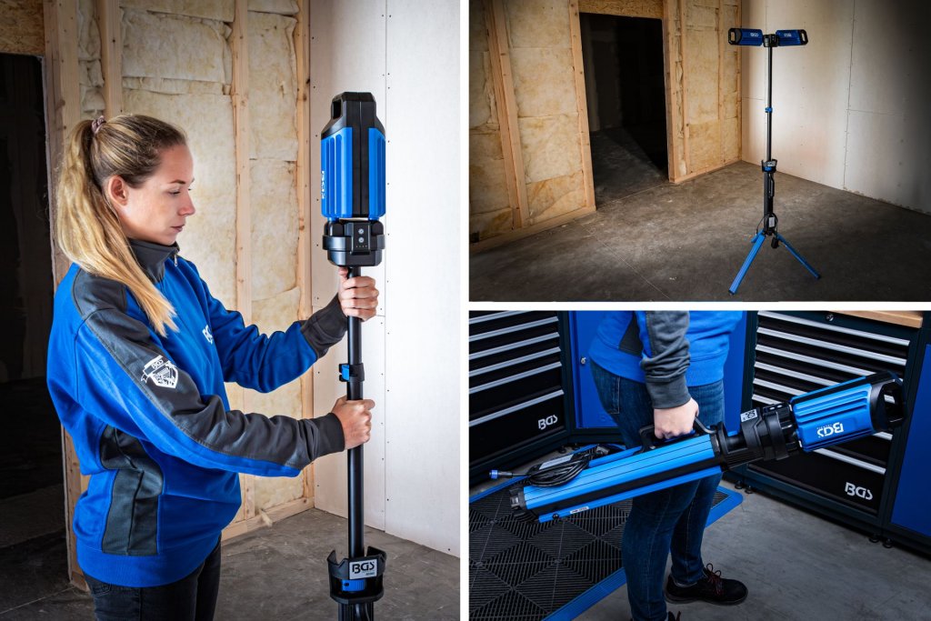 Med skydd mot damm och vatten (IP65) är arbetslampan idealisk för både inom- och utomhusbruk, även i tuffa väderförhållanden. Den hopfällbara designen gör den enkel att förvara och transportera.