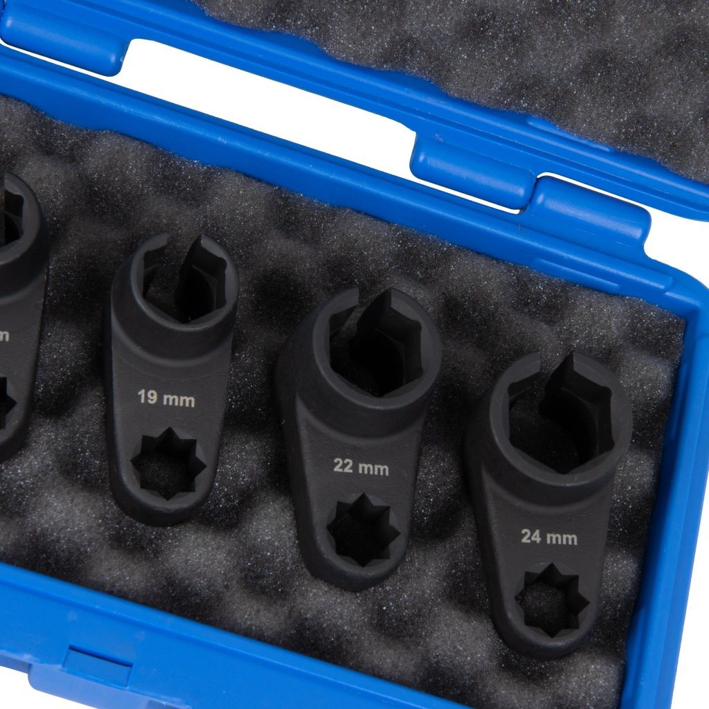 Detta professionella hylsnyckelset för lambdasonder består av 5 specialanpassade hylsor för arbete med sensorer, sonder och ledningar i motor- och avgassystem. Setet täcker de vanligaste dimensionerna och är utformat för att underlätta demontering och montering även i trånga utrymmen.