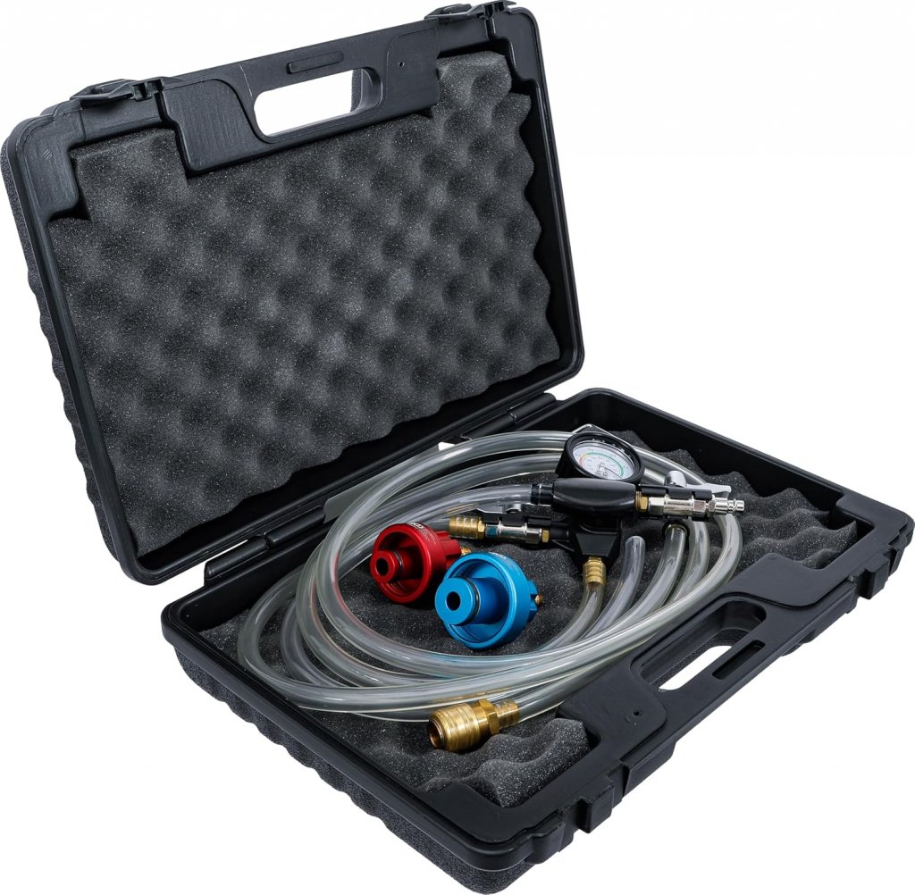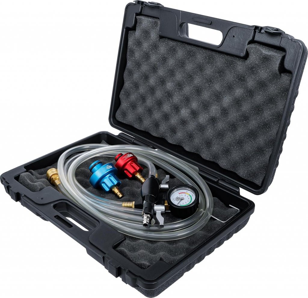 Professionellt påfyllnings- och luftningsverktyg för Teslas kylsystem, utvecklat för snabb och säker påfyllning av kylvätska utan behov av efterföljande manuell luftning. Genom att skapa ett kontrollerat vakuum med tryckluft fylls kylsystemet jämnt och helt luftfritt, vilket minimerar risken för framtida driftstörningar.
