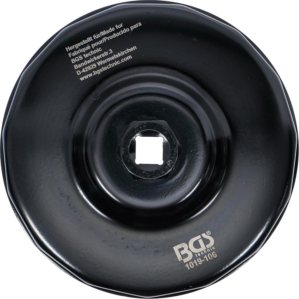 Tillverkad i svartlackerad stålplåt är hylsan robust, korrosionsbeständig och klarar tuffa verkstadsförhållanden vid daglig användning. Den yttre 15-kantiga profilen säkerställer stabilitet och minimerar risken för slitage på filterlocket.