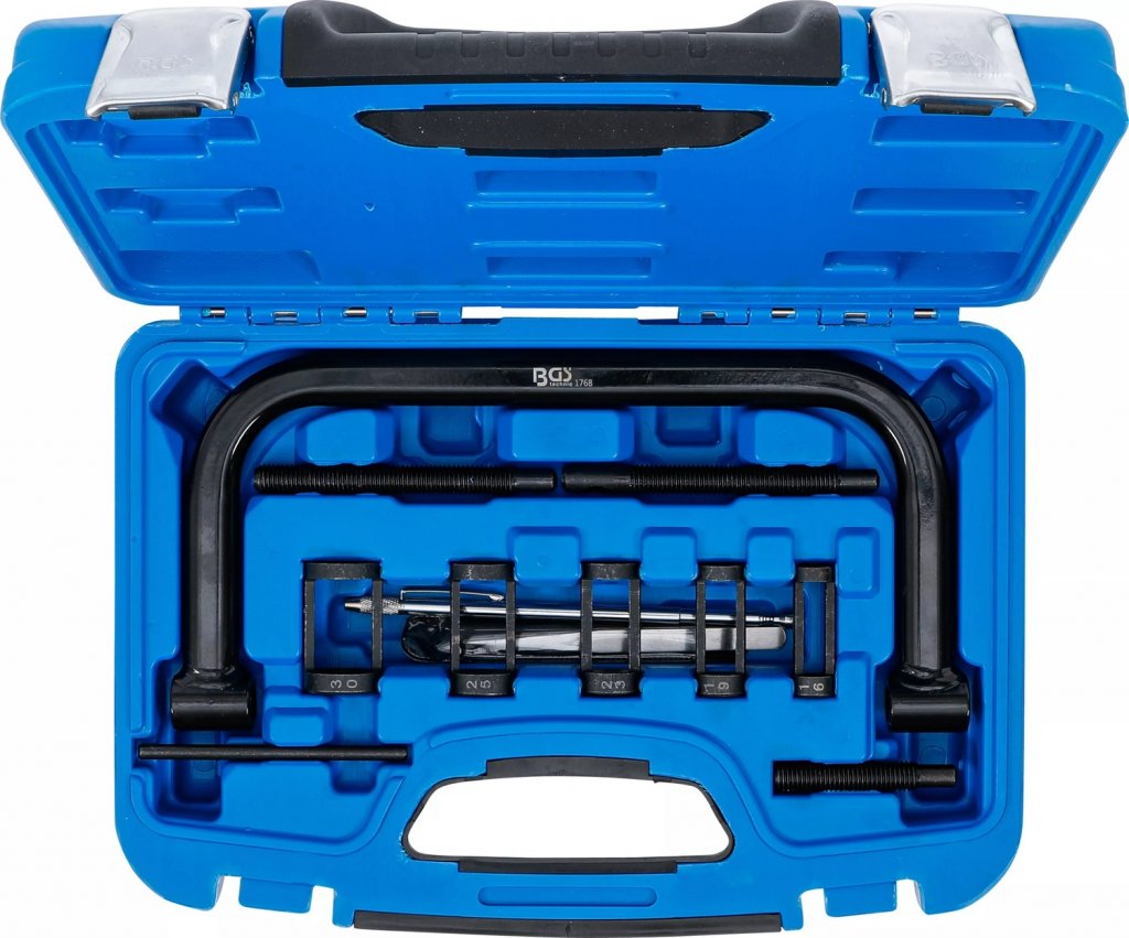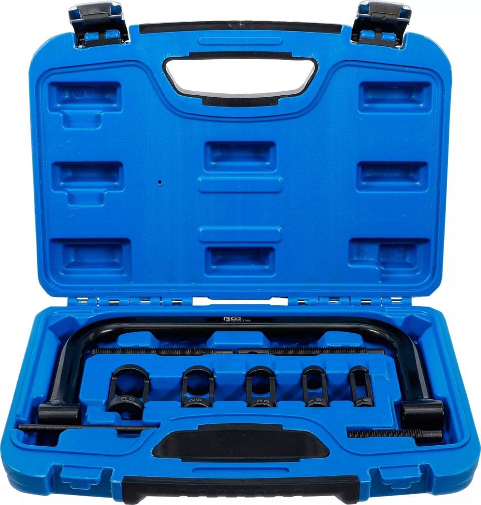 Denna ventilfjäderspännare-sats 16–30 mm är det perfekta verktyget för service på motorcyklar och mindre motorer. Med 5 utbytbara tryckstycken, 100 mm C-klämma och flera tryckskruvar kan du enkelt komprimera ventilfjädrar för snabb och säker demontering och montering.