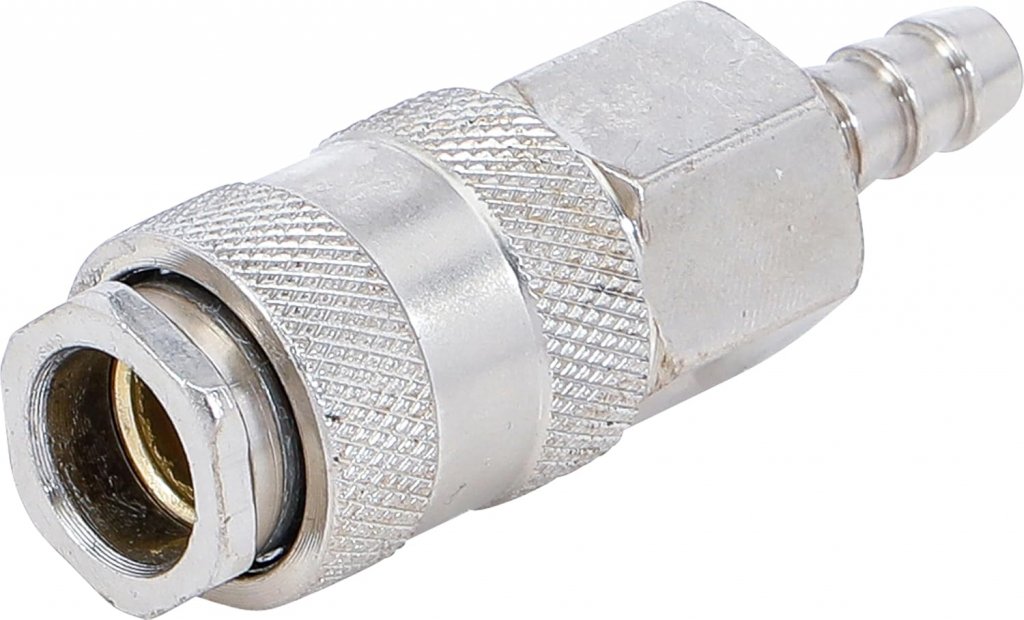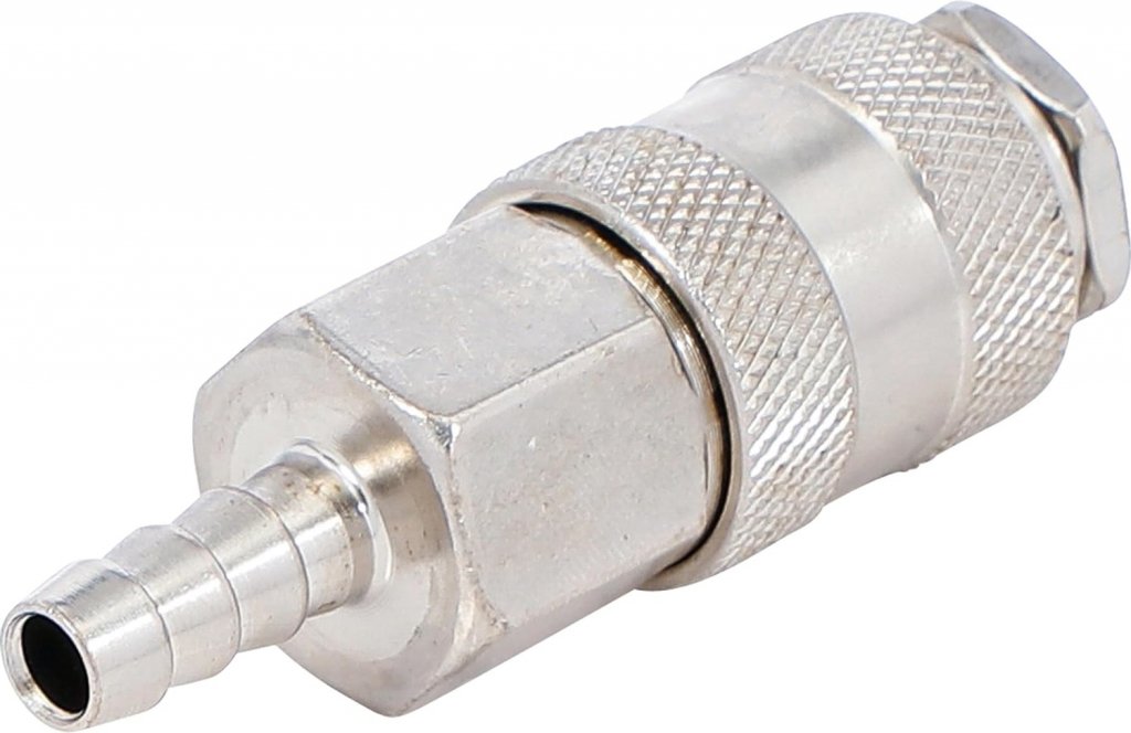Snabbkoppling för tryckluftssystem, speciellt anpassad för slangar med 8 mm innerdiameter. Den möjliggör snabb och smidig anslutning samt frånkoppling av slangar och verktyg, vilket effektiviserar arbetsflödet i verkstad och industri.