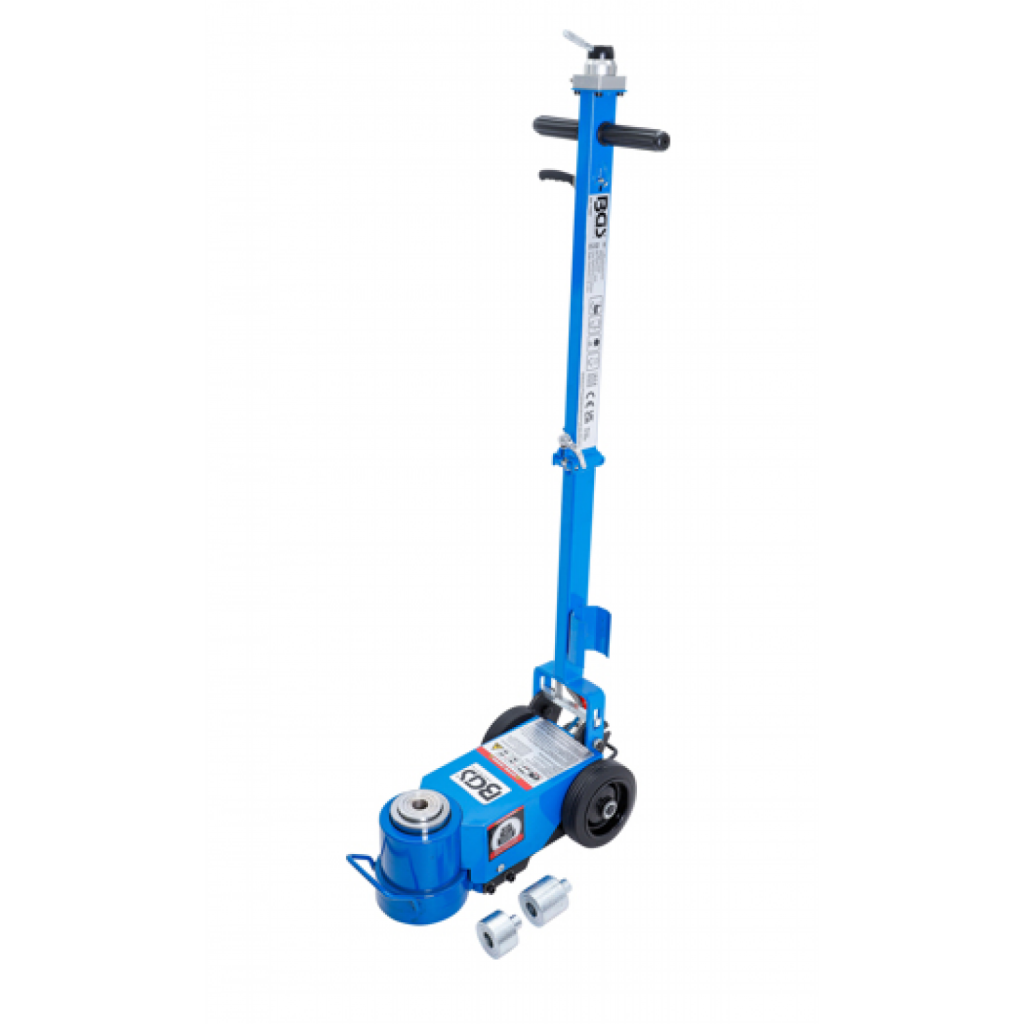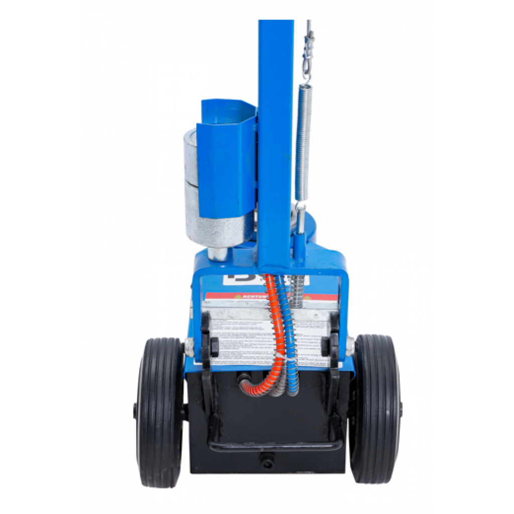 Det tryckluftsassisterade hydrauliksystemet möjliggör smidig och snabb lyftning utan större ansträngning. Domkraften är utrustad med en stor kontaktyta för maximal stabilitet och säkerhet, samt en skyddsventil som förhindrar överbelastning. Med två lyftsteg – 25 ton och 50 ton – erbjuder den mångsidighet för olika typer av lyftarbeten.