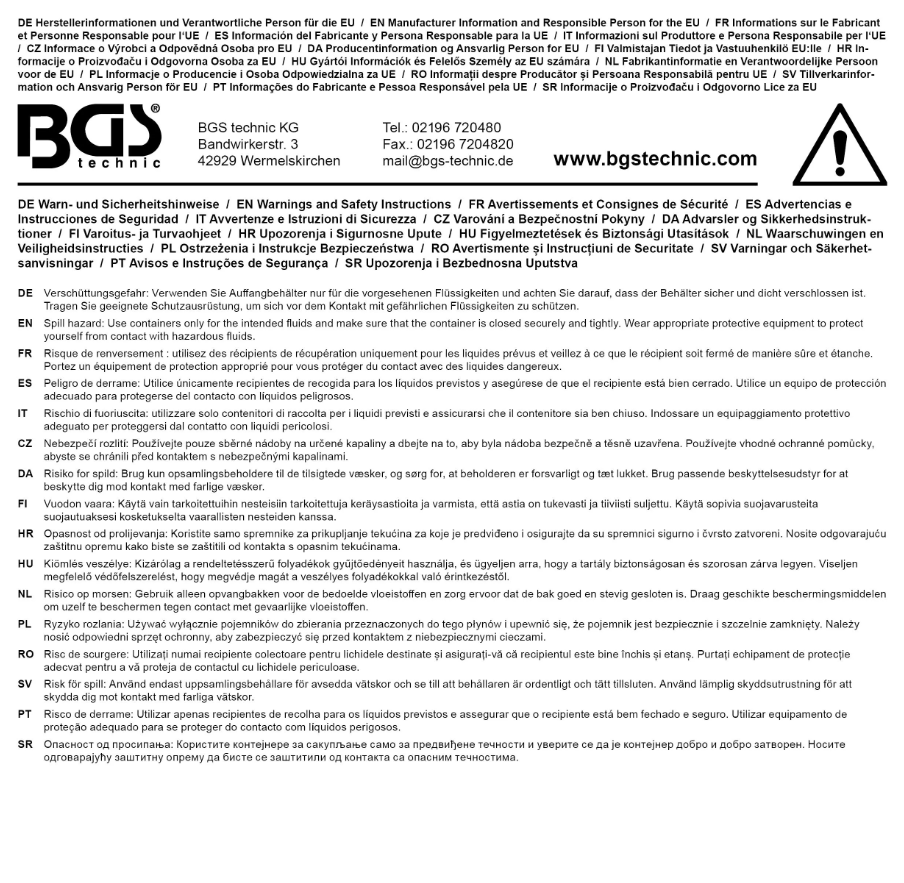 Detta spilloljekärl på 6,5 liter är ett oumbärligt hjälpmedel i verkstäder, garage och industrimiljöer. Tack vare sin universella design och tåliga konstruktion i kemikaliebeständig polypropylen (PP) klarar den av både syror och alkalier. Kärlet är utrustat med en praktisk överfyllningskant och integrerad pip runtom som säkerställer droppfri och kontrollerad tömning.