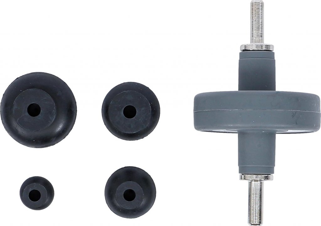De medföljande sugkopparna i fyra olika storlekar (20, 30, 35 och 40 mm) gör det enkelt att anpassa verktyget efter olika ventilstorlekar. Den 13 mm axeln gör det enkelt att fästa sugkopparna säkert, vilket ger en stabil slipning utan slitage på ventilen.