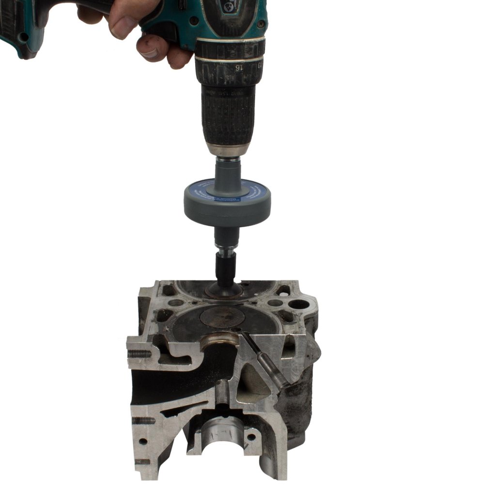 Detta kompletta ventilslipset är utvecklat för snabb och effektiv inslipning av motorventiler vid service och renovering av topplock. Verktyget monteras i en vanlig elektrisk eller batteridriven borrmaskin och omvandlar den roterande rörelsen till en oscillerande vänster–höger-rörelse – motsvarande manuell ventilinslipning.